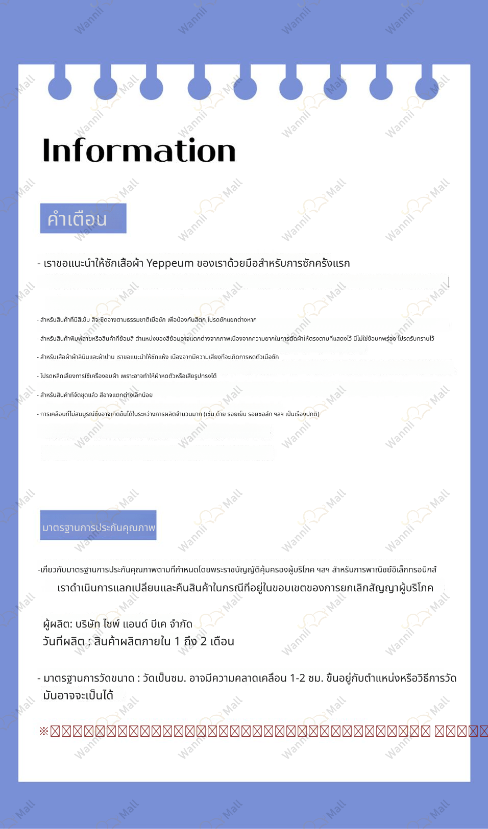 • หากคุณต้องการเปลี่ยนหรือคืนสินค้า กรุณายื่นคำขอภายใน 7 วัน หลังจากได้รับสินค้า โดยติดต่อศูนย์บริการลูกค้า Wannii Mall (together1@wannii.com หรือ 070-4256-8800)