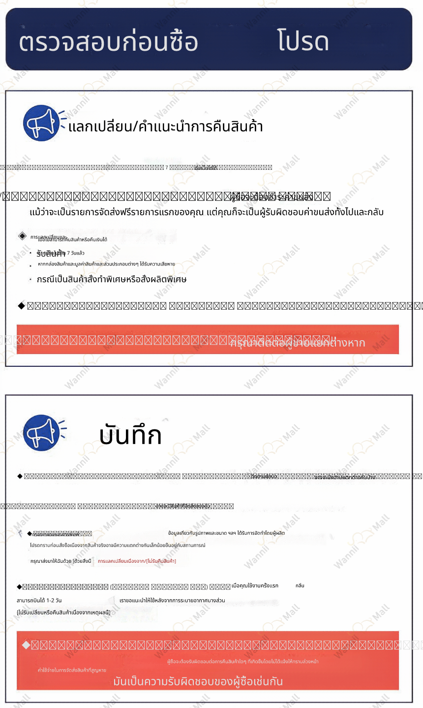 • สินค้าที่ถูกส่งคืนโดยไม่มีการแจ้งล่วงหน้า เราจะไม่รับผิดชอบ