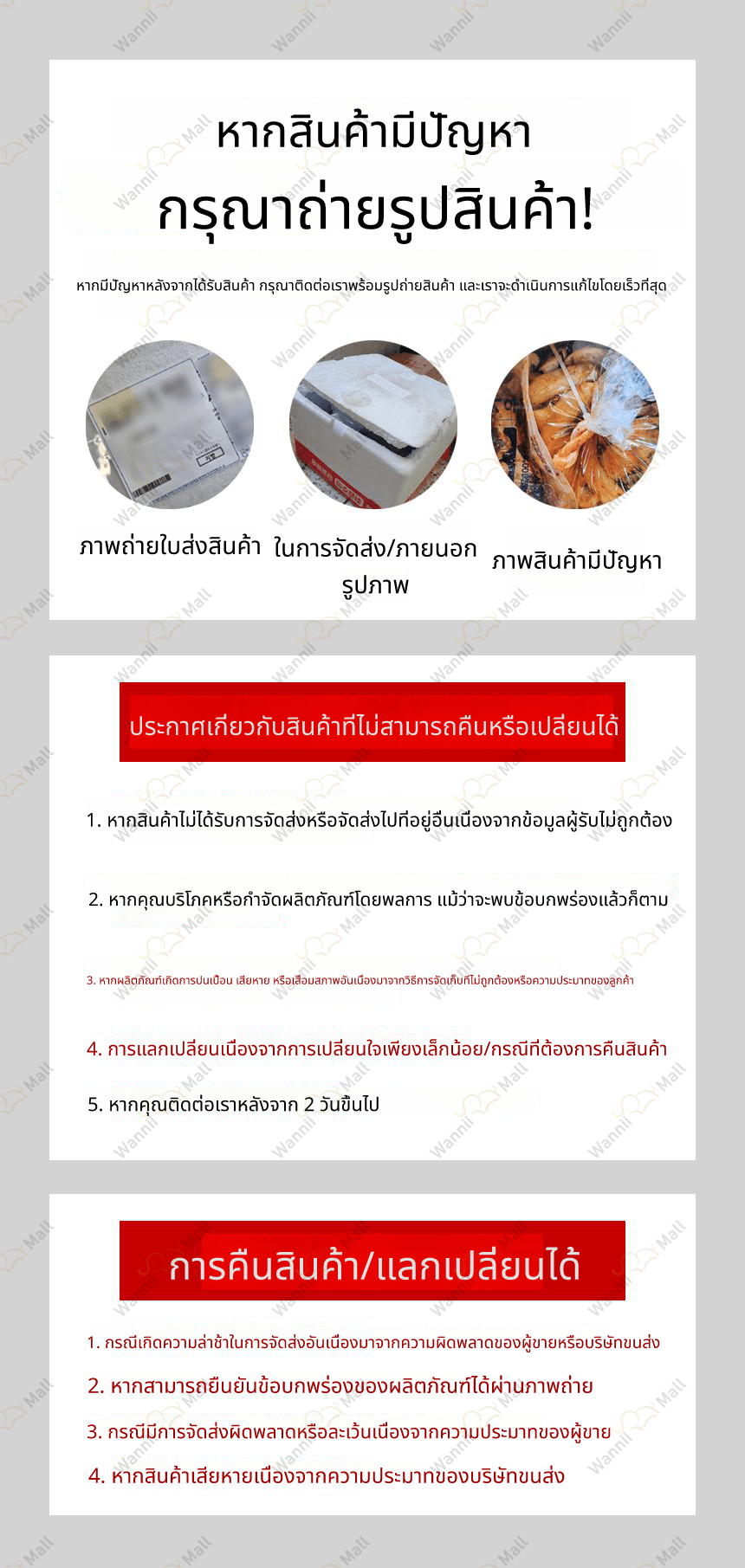 • สินค้าที่ถูกส่งคืนโดยไม่มีการแจ้งล่วงหน้า เราจะไม่รับผิดชอบ