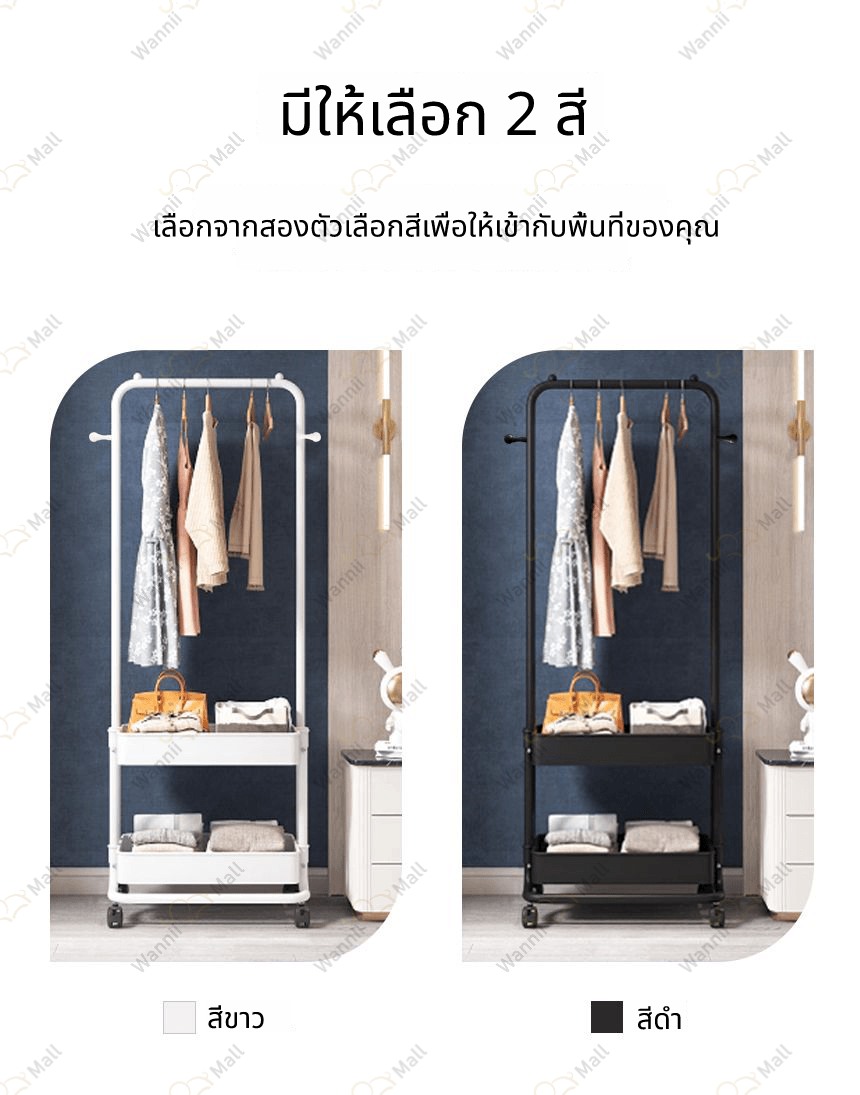 ราวแขวนเสื้อแบบมีที่เก็บของ 2 ชั้น แบบเคลื่อนย้ายได้