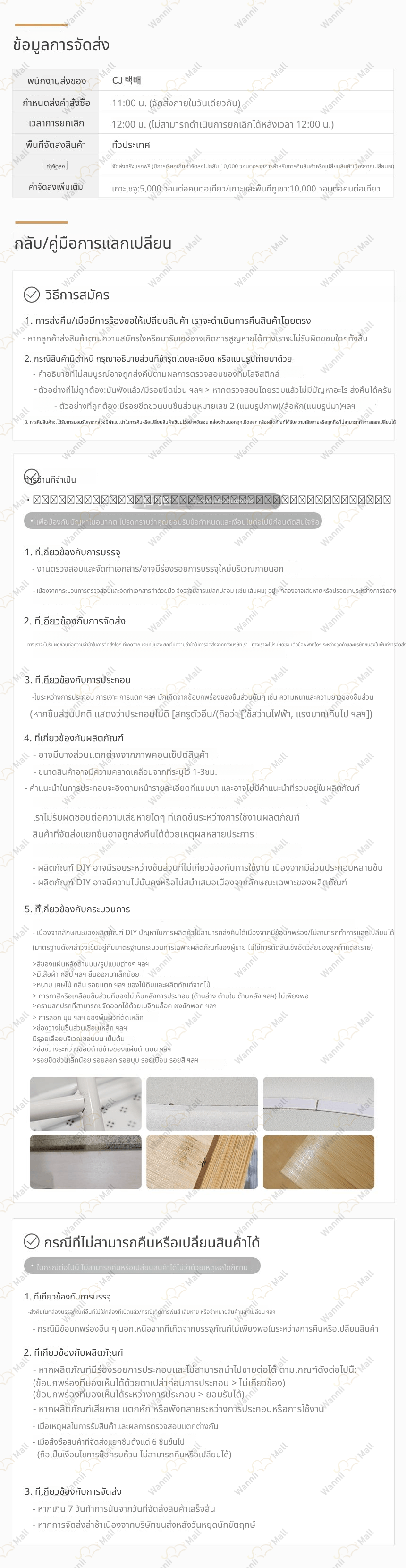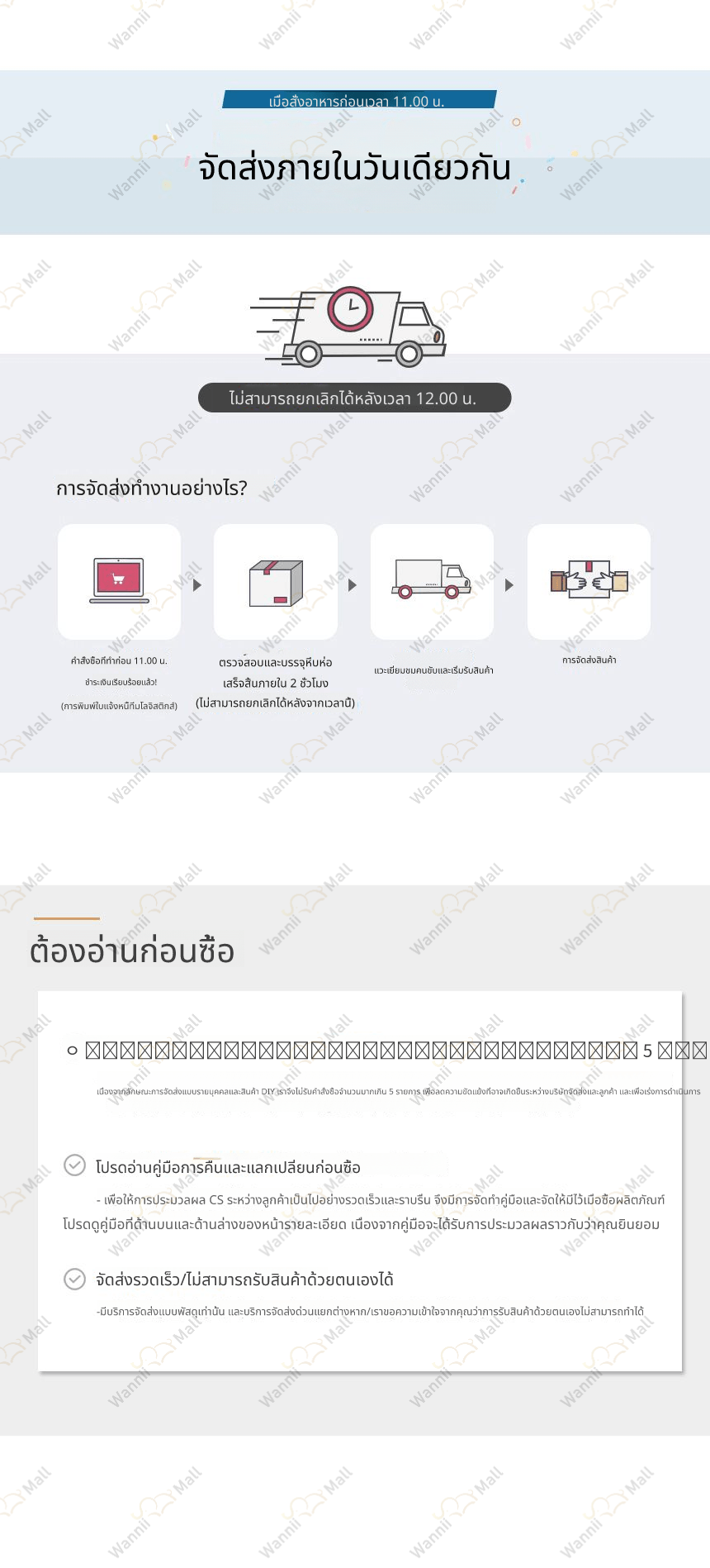 • หากคุณต้องการเปลี่ยนหรือคืนสินค้า กรุณายื่นคำขอภายใน 7 วัน หลังจากได้รับสินค้า โดยติดต่อศูนย์บริการลูกค้า Wannii Mall (together1@wannii.com หรือ 070-4256-8800)